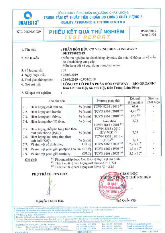 2. THÀNH PHÂN PHÂN BÓN HỮU CƠ VI SINH ONEWAY